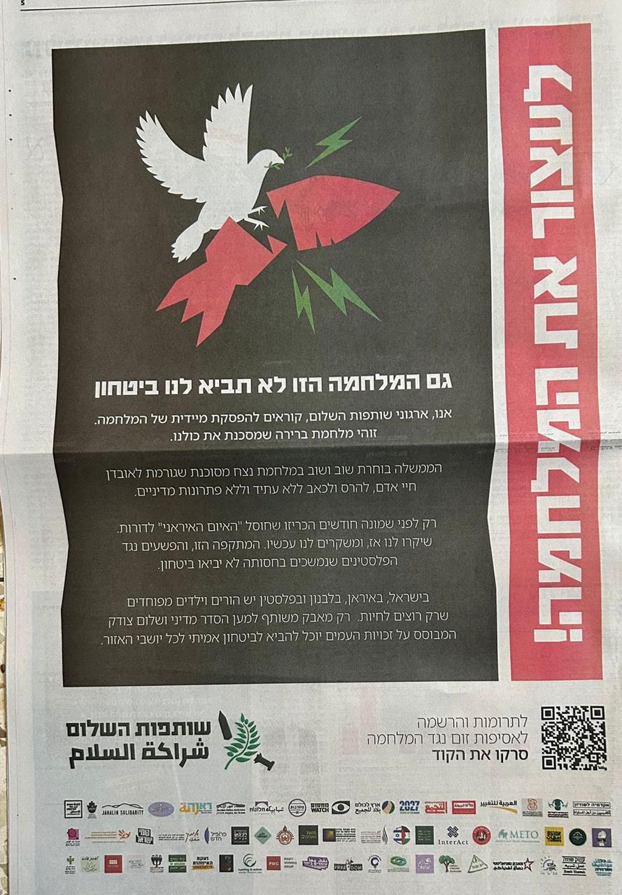 Il y a seulement huit mois, il a été annoncé que la « menace iranienne » avait été éliminée pour les générations à venir. On nous a menti à l’époque et on nous ment encore aujourd’hui. Cette attaque et les crimes contre les Palestiniens qui se poursuivent sous ses auspices du gouvernement n’apporteront pas la sécurité.